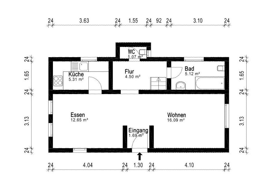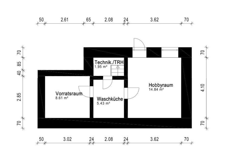 Die bestehenden Räume überzeugen trotz der geringen Höhen – teils unter zwei Metern – durch ihre charmante Grundstruktur und bieten spannende gestalterische Möglichkeiten, insbesondere im Dachgeschoss. Hier ließe sich durch eine Öffnung zum darüberliegenden, nicht ausgebauten Dachboden zusätzliches Volumen und ein modernes Raumgefühl schaffen.