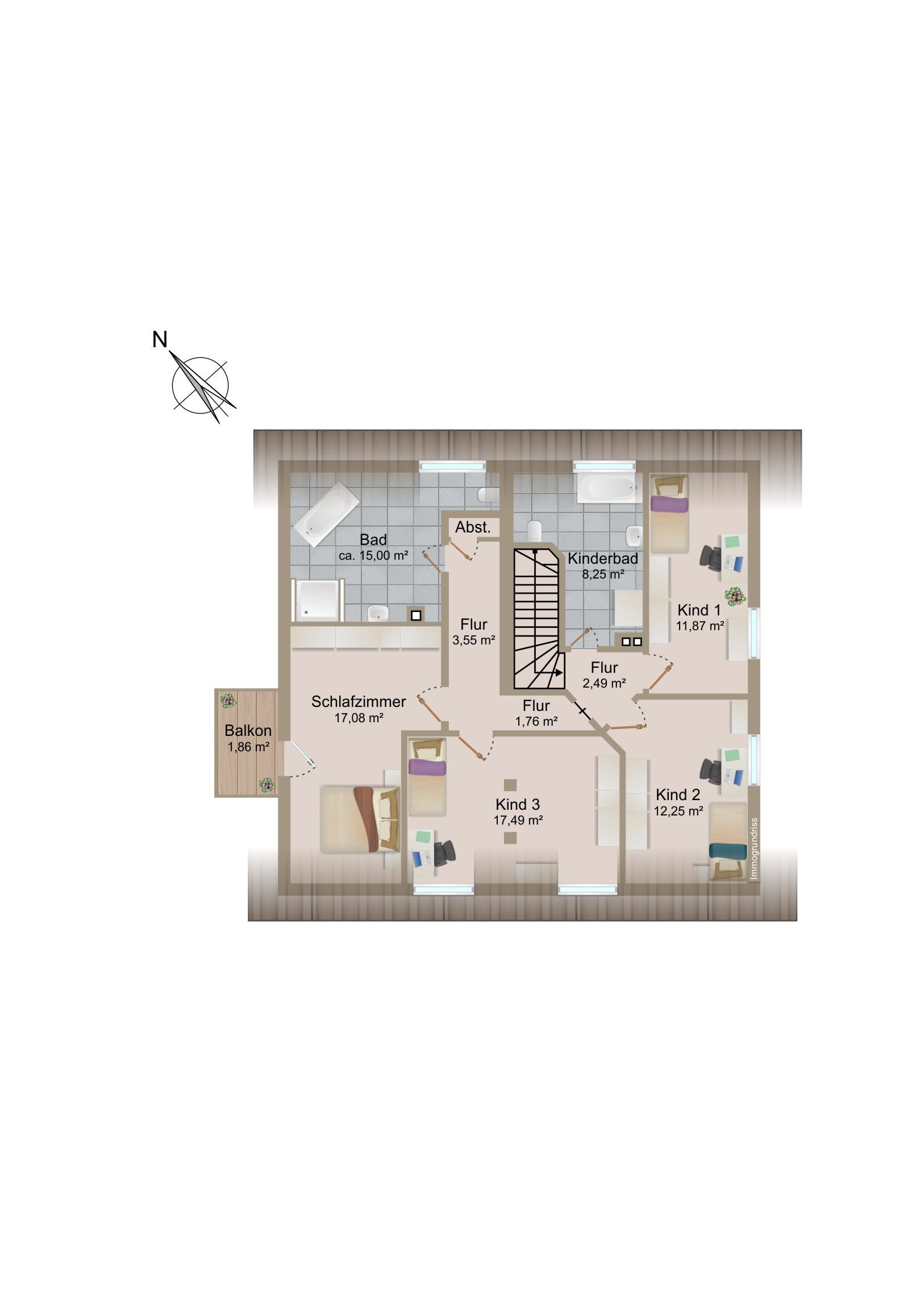 Ein nicht ausgebauter Dachspeicher bietet zusätzliche Nutz- und Abstellfläche.